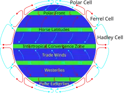 De paardenbreedten is het gebied van de subtropische hogedrukgebieden met weinig tot geen wind. De ligging en intensiteit verschuift met de seizoenen en volgt de zon met een vertraging van zes tot acht weken. Gemiddeld ligt deze echter tussen 25° en 45° breedte, grenzend op hogere breedte richting de polen met de westenwindzone en op lagere breedte richting de evenaar met de passaatgordels.