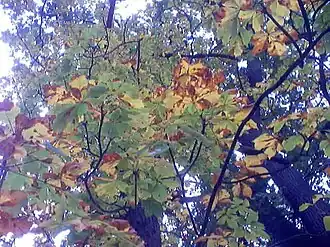 | Schade aan een paardenkastanje door de paardenkastanjemineermot | ||||||||||||