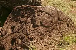 Een ander thema van de rotsgravures is het 'oogmaskermotief', ze bestaan uit een maskervormig gelaat met grote ogen, die een scheppende godheid afbeelden. Verder zijn er naast grafische tekens andere diervoorstellingen te zien, zoals vogels, walvissen, haaien en schildpadden.