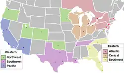De divisies worden ingedeeld door geografische ligging. De Pacific Division bestaat sinds 1970.