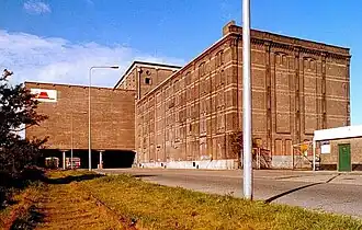 Het origineel werd tussen 1893 en 1895 gebouwd aan de Oostelijke Handelskade 27 in Amsterdam. Het ontwerp is van architect H. Moen en waarschijnlijk ook van G. van Arkel.[1] Het was eigendom van Blauwhoedenveem, een van de bedrijven die zorg droegen voor de opslag en verwerking van de aangevoerde producten. Aan het begin van de 20ste eeuw werd het pakhuis verbouwd tot koelhuis, waarbij de ramen werden dichtgemetseld en de gevels werden geïsoleerd met kurk. In september 1948 werd het pand door een grote brand getroffen, en wordt voor de helft verwoest.