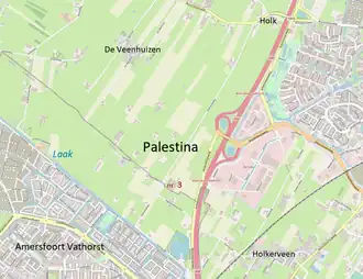 Palestina is een buurtschap behorende tot de gemeente Nijkerk en de gemeente Amersfoort. Het ligt net ten westen van Nijkerkerveen en de buurtschap Holkerveen en ten noorden van Hooglanderveen. In het gebied lopen de wegen Palestinaweg, Palestinaweg-Oost en Palissaden. De Palissaden vormt de grens tussen de provincies Gelderland en Utrecht en daarmee ook de grens tussen de gemeenten Nijkerk en Amersfoort. Aan de oostzijde wordt Palestina begrensd door de A28 en in het zuiden door de waterloop de Laak en de wijk Vathorst van Amersfoort.