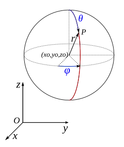 De algemene cartesiaanse vergelijking van een boloppervlak of sfeer met straal en middelpunt in wordt gegeven door