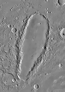 - ↑ (en) Mars’s mysterious elongated crater, The European Spacy Agency, 27 augustus 2010