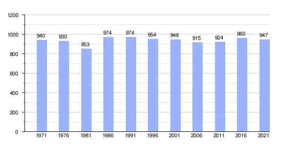 | Bron: Statistics Canada (1971–1986[3], 1991–1996[5], 2001–2006[6], 2011–2016[7], 2021[8]) |