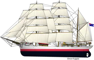 De bark Picton Castle in 2009 voor anker bij Carriacou | ||||