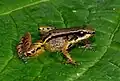 Kwakend mannetje van de gestreepte pijlgifkikker.