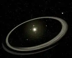 Artistieke impressie van υ And A met twee planeten, binnen het Upsilon Andromedae-stelsel.