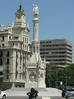 Centraal op het plein, midden op een rondpunt, bevindt zich het monument voor Cristoffel Columbus, een neogotisch monument uit 1885 bestaande uit een standbeeld van Columbus bovenaan een zuil in een grote fontein. Het beeld is van de hand van Jerónimo Suñol. Een replica van dit beeld is nog steeds in het Central Park in New York aanwezig, het werd in 1892 door de New York Genealogical and Biographical Society gedoneerd ter nagedachtenis aan de vierhonderdste verjaardag van zijn aankomst op het Amerikaanse continent.