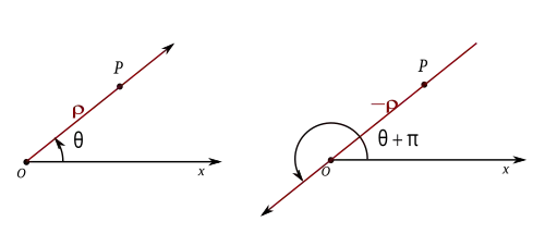 Het kan in sommige gevallen nuttig dat de voerstraal ook negatieve waarden kan aannemen. Om dit mogelijk te maken kan men de definitie van het poolcoördinatenstelsel iets veranderen.