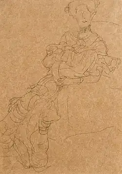 De studies van Fritza Riedler zijn echter zonder uitzondering volledig gekleed. Ze geven allen de diagonale structuur te zien die kenmerkend zou worden voor het uiteindelijke portret en maken tevens duidelijk dat Klimt bijzonder veel aandacht had voor het vallen van de japon en de houding, elementen die belangrijk waren voor heft effect dat hij wilde creëren.[3]