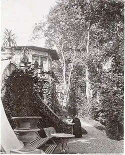 - ↑ Gesuggereerd is ook wel dat het Hirschsprungs zomerhuis "Vilhelmsdal" zou kunnen zijn, gelegen nabij de kust van de Svanemøllebaai (Svanemøllebugten) in Kopenhagen, maar gezien de bosachtige achtergrond is dat onwaarschijnlijk. Oude foto's van "Skraenten". Laten ook duidelijk overeenkomsten zien met het werk, bijvoorbeeld in de balustrade.