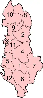 Albanië is onderverdeeld in twaalf prefecturen (Albanees: officieel qark/qarku, vaak wordt prefekturë/prefektura gebruikt). Deze waren voor de gemeentelijke herindelingen in 2015, onderverdeeld in 36 districten.