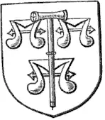 Het wapenschild van het klooster van Kyrkham met een priorstaf.