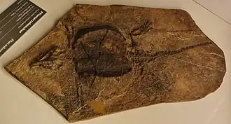- ↑ Wei Wang, Feimin Ma & Chun Li. 2020. "First subadult specimen of Psephochelys polyosteoderma (Sauropterygia, Placodontia) implies turtle-like fusion pattern of the carapace", Papers in Paleontology, 6(2): 251-264