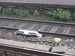 - Direct naast een stoptonend sein is een magneet aangebracht met een frequentie van 2000 hertz. Als een magneet is ingeschakeld met een frequentie van 2000 hertz en een trein deze magneet passeert, volgt direct een snelremming. De afstand tussen het stoptonende sein en het beveiligde gevaarpunt is zo groot dat de trein tijdig tot stilstand zal komen.
