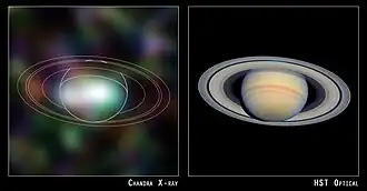 Het röntgenspectrum van Saturnus lijkt op dat van de zon, wat wijst op weerkaatsing door de atmosfeer van Saturnus. De ringen zijn niet zichtbaar in röntgenlicht.