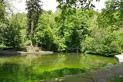 De karstbron van de rivier, de Aachtopf | ||||
