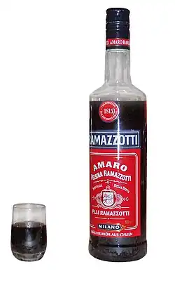 - De donkere kruidenbitter Amaro Ramazzotti heeft een alcoholpercentage van 30%. Hij heeft een bitterzoete smaak. Het originele recept werd op punt gesteld door de stichter van de firma, Ausano Ramazzotti. Er zijn 33 ingrediënten voor nodig, waaronder twee verschillende sinaasappelschillen: zoete uit Sicilië en zure van Curaçao. Hij wordt verkocht in een fles van 70 centiliter met een rood etiket met de vermelding "Amaro Felsina Ramazzotti".