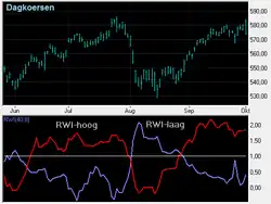 In de technische analyse wordt de RWI gerepresenteerd door twee lijnen: de RWI-hoog en de RWI-laag. Deze twee lijnen slingeren zich om de 1-lijn. Als de RWI-hoog boven de 1 komt, betekent dit dat de koersen zich in een significante stijgende trend bevinden. Bij een RWI-laag boven de 1-lijn betekent dit dat de koersen zich in een significante dalende trend bevinden.[2]