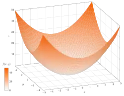 - De functie is een reëelwaardige functie van twee reële variabelen. Hierbij zijn (impliciet) element van . Soms wordt in een dergelijk geval ook gesproken van een reële functie.