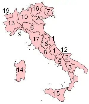 Italië is onderverdeeld in twintig regio's (Italiaans: regioni).