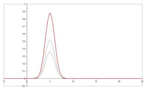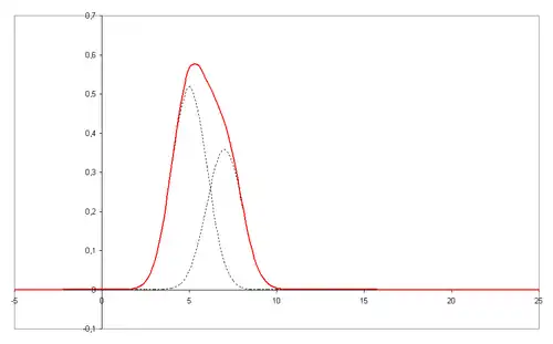 De pieken liggen hier helemaal vrij van elkaar. Het is nu mogelijk om van beide pieken de oppervlakte te bepalen om de verhouding van de twee componenten in het monster te bepalen.