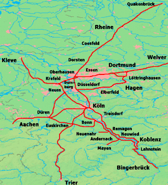 In het Ruhrgebied werden de lijnen relatief laat aangelegd, zodat de situering slechter was dan van de eerder aangelegde lijnen van BME en CME. Ook was de aanleg gericht op het vervoer van steenkool. Deze lijnen zijn daarom grotendeels verdwenen. De lijnen in het Rijnland en in het dal van de Rijn spelen daarentegen nog steeds een belangrijke rol.
