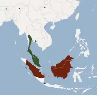 | Verspreidingsgebied van Rhinolophus trifoliatus (rood) | ||||||||||||