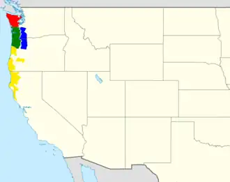 | Verspreidingsgebied Rhyacotriton soorten | ||||||||||