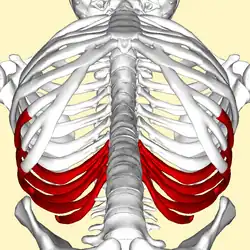 De achtste, negende en tiende ribbenparen zijn aan de voorzijde verbonden met de bovengelegen rib, deze staan bekend als de valse ribben, costae spuriae VIII-X.[3]