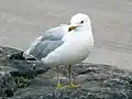 Deze meeuw lijkt wel wat op de stormmeeuw maar hij heeft een gele snavel en groengele poten. De snavel heeft een zwarte ring, waar de vogel zijn naam aan ontleent.