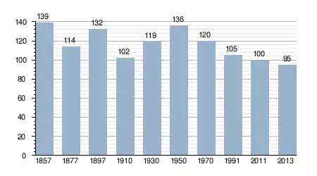 - Bron: INE, 1857-2011: volkstellingen