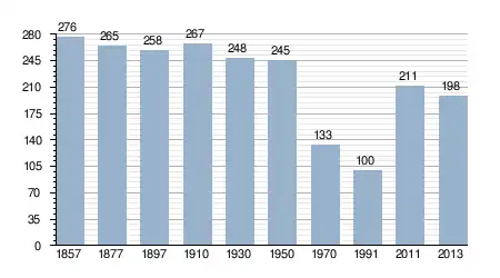 - Bron: INE, 1857-2011: volkstellingen