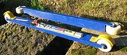 De gebruikte ski's zijn circa 60 cm lang. Sommige zijn iets korter en er bestaan ook nog iets langere. Die langere ski's hadden achter twee smalle wieltjes en voor één wieltje. Tegenwoordig hebben bijna alle ski's voor en achter één wiel. Het achterste wiel is bijna altijd vrij breed en het voorste wiel kan breed of smal zijn. Met een smal wiel gaat het sneller op gladde ondergrond, maar kan het wat moeizamer worden als de ondergrond een beetje zacht is. Dan is een wat breder wiel comfortabeler. Er kan op vrijwel elke ondergrond gerolskied worden, asfalt, tegels, schelpenpaden, straatstenen, enz., maar niet op een erg zachte ondergrond.