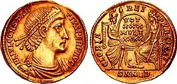 Constans, die een slechte relatie had met de generaals van zijn leger, werd in 350 omvergeworpen door een militaire samenzwering en gedood terwijl hij vluchtte. Door zijn leger werd de barbaarse officier Magnentius tot nieuwe keizer uitgeroepen die vervolgens in conflict kwam met Constantius, de enige overgebleven zoon van Constantijn I.