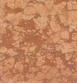 Het gaat om fijne kalksteen die knobbels bevat en soms complete fossielen. De knobbels hebben een lichtere kleur dan de matrix waarin ze ingebed zijn. De matrix bevat coprolieten ofwel versteende uitwerpselen van prehistorische diertjes die in de oceaan leefden. De kleur van het marmer is doorgaans rood maar kan variëren naar gele of groene tinten.