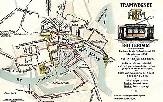 Op 18 september 1905 nam de RETM de eerste elektrische tramlijn in gebruik: lijn 1 van de Honingerdijk in Kralingen via de Beurs naar de Westerlaan bij het Park. De aanleg van tramlijnen werd voortvarend ter hand genomen: in 1910 had de RETM 10 tramlijnen en bediende daarmee alle wijken van de stad.