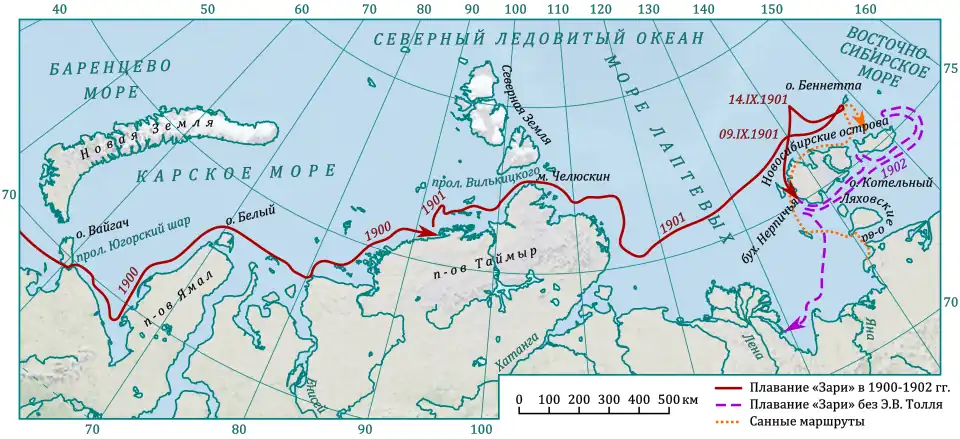 De Russische poolexpeditie van 1900–1902 werd georganiseerd door de Russische Academie van Wetenschappen in Sint-Petersburg. Doel was de Noordelijke IJszee ten noorden van de Nieuw-Siberische eilanden te onderzoeken en op zoek te gaan naar het legendarische Sannikovland. Tevens moest een noordoostelijke doorvaart naar Oost-Azië worden gezocht. Leider was de Russische geoloog en poolontdekker baron Eduard von Toll op het schip Zarja. Toll en drie anderen verdwenen eind 1902 nadat ze op Bennetteiland waren geweest. Een van de sleutelfiguren van de expeditie was Aleksandr Koltsjak, een jong onderzoeker en luitenant bij de Russische marine, later een politiek en militair leider van de Witten tijdens de Russische Burgeroorlog.[1]