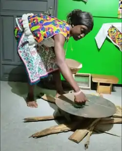Vrouw bij het stampen van cassave | ||||