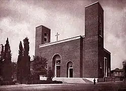 Met de bouw van de kerk - naar een ontwerp van de architect Marcello Piacentini - werd in 1924 begonnen. Aanvankelijk wilde Piacentini zijn kerk vormgeven naar de maatstaven van veel zestiende-eeuwse Romeinse kerken, maar hij zag daarvan af, legde de bouw stil en maakte een heel nieuw ontwerp. Kenmerkend voor het ontwerp zijn de hoge koepel en de twee uit baksteen opgetrokken klokkentorens. De bouw werd uiteindelijk in 1934 voltooid. Binnen zijn verschillende kunstwerken te zien, waaronder een fresco van het Heilig Hart van Christus Koning, meteen achter het altaar.