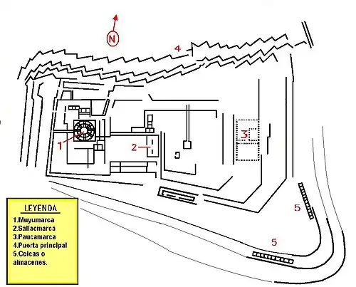 Deze plek ligt op ongeveer 3500 meter boven zeeniveau en kan vanuit Cuzco te voet (na een steile klim) bereikt worden. Het gebied is 3094 hectare groot. In de tijd van de Inca's bevond zich op het plateau boven de drie nog bestaande terrassen een groot complex met als middelpunt een vier of vijf verdiepingen hoge toren. De gebouwen boden ruimte aan 5000 personen.
