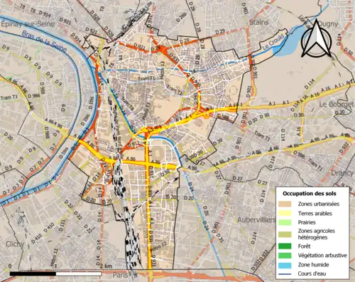 De onderstaande kaart toont de ligging van Saint-Denis met de belangrijkste infrastructuur en aangrenzende gemeenten.