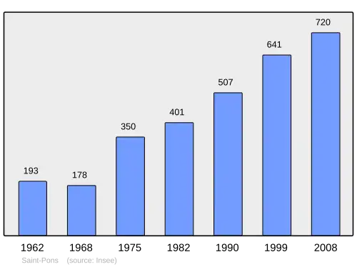 De oppervlakte van Saint-Pons bedraagt 32,06 vierkante kilometer. Op 1 januari 2023 was de bevolkingsdichtheid 19,7 inwoners per km². De onderstaande kaart toont de ligging van Saint-Pons met de belangrijkste infrastructuur en aangrenzende gemeenten.