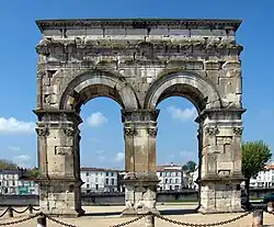 Als hoofdstad van de grootste provincie van Gallia is Saintes begiftigd met een groot aantal monumenten: een amfitheater, een stadspoort, de Boog van Germanicus, die op de toenmalige brug over de Charente stond, de thermen van Saint-Saloine en een Romeins aquaduct.