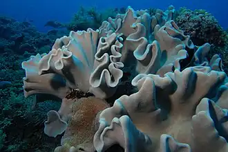 | Sarcophyton trocheliophorum (onderaan: geopende poliepen) | ||||||||||||||