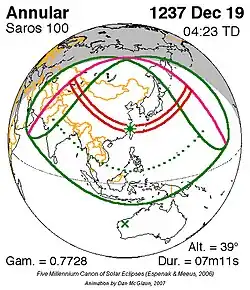 Langste ringvormige zonsverduistering 9 jan. 1274 7m 26s -