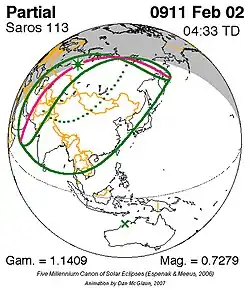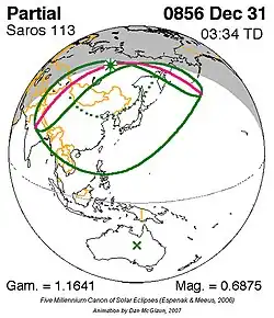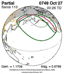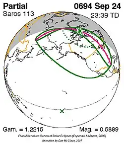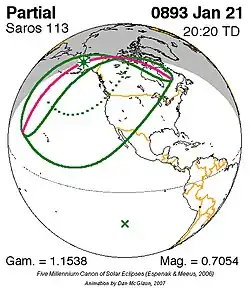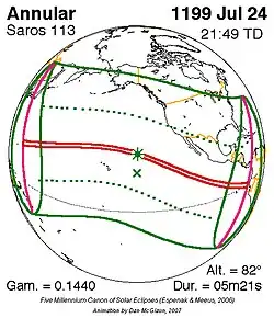 Saros 113 zonsverduisteringserie als bewegend beeld