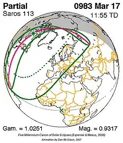 Grootste gedeeltelijke zonsverduistering 17 mrt. 983 - 0,93174