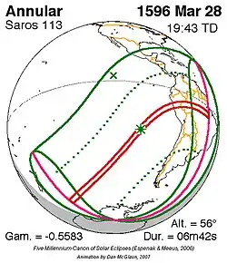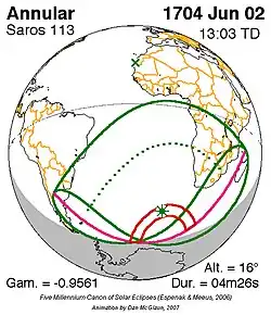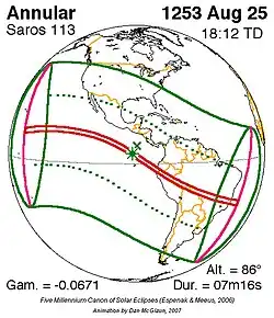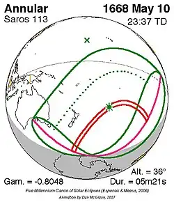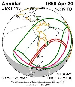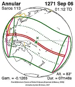 Kortste ringvormige zonsverduistering 18 apr. 1037 2m 21s -